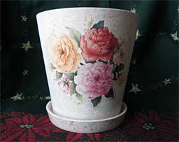 額絵と鉢を作ります。ナプキンをカット、貼り付け、