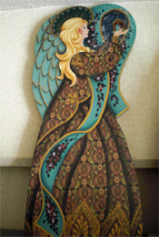 | ファブリックエンジェル 全体に布を張ってシーラーでコー ティングしてから細部を描いています (参考)Nancy Lee Lenski |